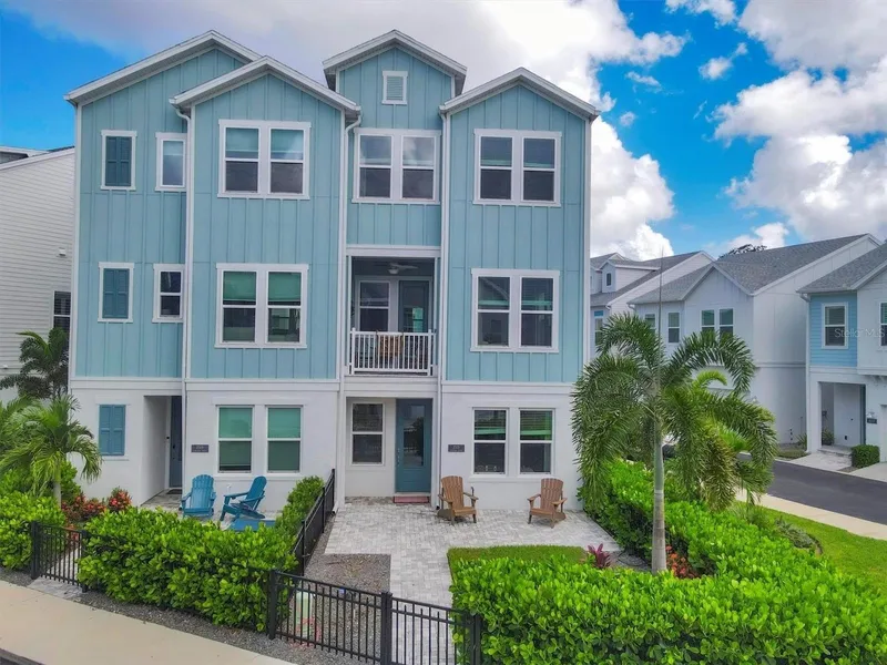 Available Sept. 1 partially furnished townhouse in Payne Park Village! This beautiful three-story townhouse built in 2022 has a fenced-in yard and front patio. Upon entering you will find a first-floor bedroom with en-suite bath. The second floor is an open concept living room, dining room, large kitchen, powder room and balcony. The third floor has a primary bedroom/bath suite and third bedroom. The kitchen has quartz countertops, stainless steel appliances and range hood. The home also has a two-car attached garage. The location in downtown Sarasota is across the street from 29-acre Payne Park with tennis courts, playground and more. Payne Park Village has a community pool and spa, and direct access to Legacy Trail. The location is convenient to downtown Sarasota shopping, dining, and entertainment. Or you can hop on the Bay Runner which stops nearby Payne Park for a trip to St. Armands Circle and Lido Beach. Please call now for a private showing.