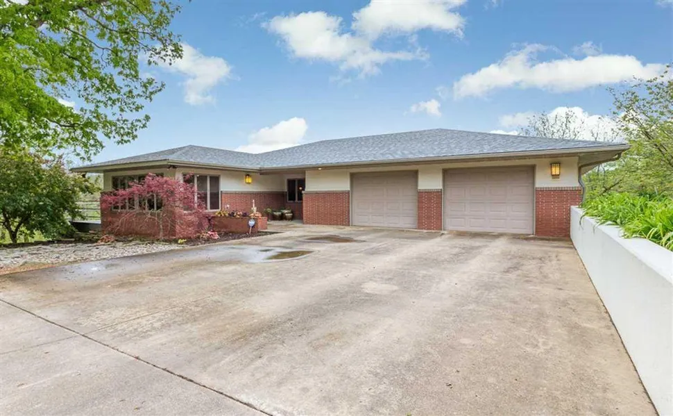Extraordinary owner-built forever home in a private setting overlooking 40 acres of park-like scenery and breathtaking landscaping that requires minimal upkeep. After more than 10 years of planning, it was constructed by one of the area's best custom builders and utilized insulated concrete forms (ICF). Inspired in the style of Frank Lloyd Wright, it has a central hallway from end to end with 20' of built-in cabinets and has a long, narrow Roman bricks. The long and narrow windows, brick-to-stucco exterior proportions, a bench in the living room, and the living room ceiling all take after his work. This home is private, beautiful, and welcoming. Soft natural light has been thoughtfully injected into each room for year-round sunlight. The extra-wide 10' deck has peaceful views of the valley and the pond. The basement (10' ceilings) has 3 areas; one has spectrum lighting & bathroom - a great family room/bedroom. Handicap Accessible. One of a kind home!!