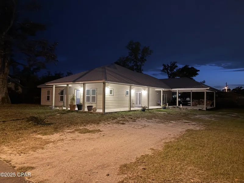 Welcome to this spacious and energy-efficient home on a large 0.48-acre lot! Built in 2020 and lightly lived in, this 3-bed, 2-bath home offers over 2,100 sq ft of well-designed living space with accessibility in mind-including extra-wide doorways and hallways. Enjoy the wraparound porch with multiple covered patio areas, perfect for outdoor relaxation. Interior features include a cathedral ceiling in the master suite, French doors, noise-reducing insulation, and a luxurious master bath with walk-in shower, dual shower heads, and custom tile finishes. Other features: French door access to private master patio Multiple closets in master bedroom Large attic for additional storage Energy-efficient construction Detached barn/storage building Cinderblock structure included at no value Built post-Hurricane Michael to modern standards. No HOA. Quiet, spacious lot with room to expand or garden. Qualified buyers-schedule your showing today!