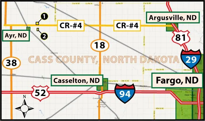 Research Parcel InformationDirections: This property is located 1 miles east of Ayr, ND. Parcel 1 lies directly north of Cass County #4 & Parcel 2 lies mile directly south of Parcel 1 (south of Cass County #4).