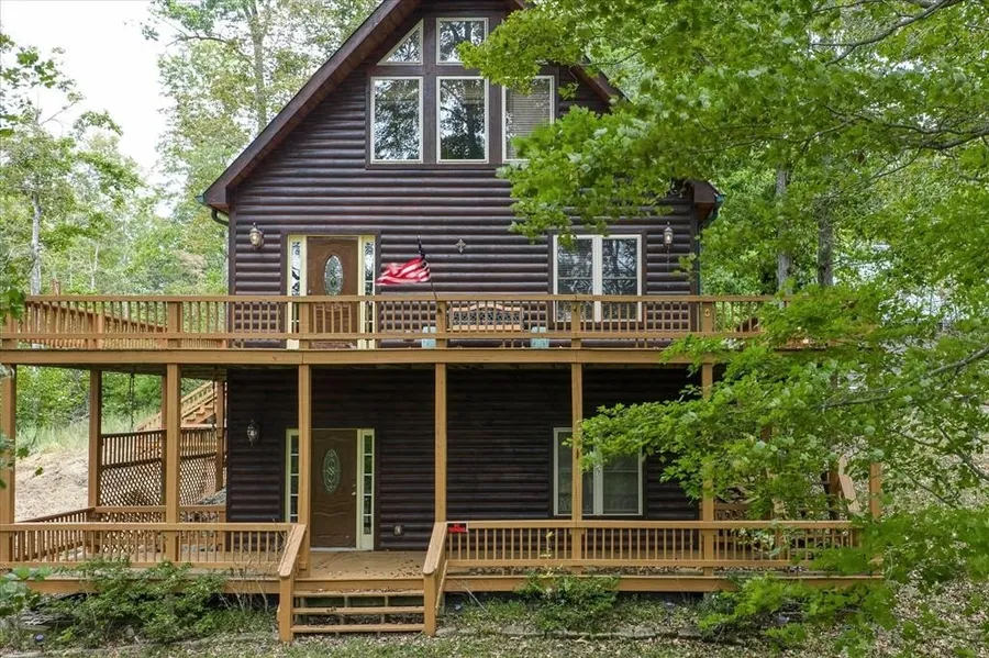 Priced to sell!! Beautiful log cabin with much to offer! Nestled in a wooded setting, just inside Woodsdale Estates, you'll find this beautiful three level, log siding home, situated on 3 acres m/l. This custom-built home offers 2600 sq ft with open living/kitchen/dining, kitchen with island for added seating and plenteous workspace. Also on the main floor, one bedroom and full bath, and two entrances onto the wrap deck porches. The upper level offers a spacious primary suite with full bath and open loft area, perfect for game room, office or bunk space. The lower level offers a family room, laundry area, full bath with jacuzzi tub and additional room for sleeping (no wdw or closet). The lower level offers a walk out to the lower porch and lawn. The detached garage is suitable for 4 vehicles with a 900 sq ft bonus room above and added storage. Concrete drive, storage shed, perfectly situated only minutes from Dale Hollow Lake and Lake Cumberland! Taxidermy and furnishings remain.