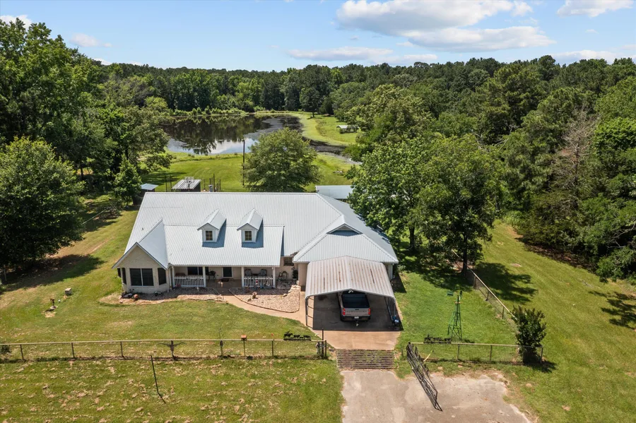 This stunning 51.37-acre property offers a picturesque mix of mostly open pastureland, perfect for cattle, hay production, or simply enjoying wide open spaces. A beautiful 2.5-acre pond adds both function and charm, ideal for fishing and livestock. A well-maintained three bedroom, two bath brick home offers comfortable living. The inviting living room is highlighted by a river rock fireplace with an iron wood-burning stove for those cool East TX nights. The island kitchen has amble cabinet and counter space and a breakfast nook. There is a handy laundry with utility sink just off the kitchen. Tucked away for privacy, the primary suite has his and her closets, a private bath with his and her sinks, jacuzzi tub, and walk-in shower. Two guest bedrooms share a hall bath. Enjoy outdoor living year-round with a large, enclosed patio. Additional features include: two-car garage, two-car carport, 40x80 workshop ideal for projects, storage, or even business use! This shop is equipped with its own bathroom, full living quarters with appliances, and a charming front porch making it the perfect guest quarters. Whether youre looking to settle down, raise livestock, or enjoy country living, this property has it all! Come experience the perfect blend of country comfort and practical amenities this is Texas living at its best!