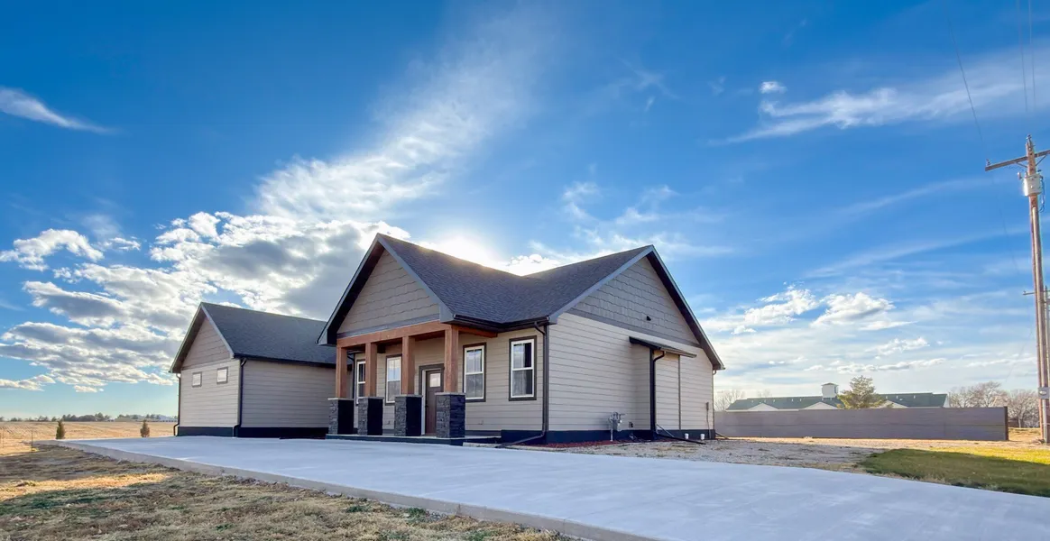 Welcome home to this well maintained 3 bedroom, 2 bath home sits on just over half an acre and offers 1,754 square feet of comfortable living space. Built in 2023, this thoughtfully designed home features convenient one level living and a functional open floorplan that is ideal for both everyday life and entertaining. Outdoor amenities include landscaping, a privacy fence, and tree row along the south side of the property, providing a peaceful setting and added privacy. Inside, the open layout connects the living, dining, and kitchen areas, creating a bright and inviting atmosphere. The kitchen is both beautiful and practical, featuring ample cabinetry, generous counter space, and a large pantry that offers excellent storage. The primary bedroom serves as a relaxing retreat with plenty of space, a walk in shower, and a walk in closet. Two additional bedrooms and a full bathroom provide comfortable accommodations for guests, family members, or a home office. Designed with accessibility and ease of living in mind, this home has been exceptionally well cared for and is truly move in ready. A wonderful opportunity to enjoy modern construction, space, and privacy in a home that is ready for its next owner.