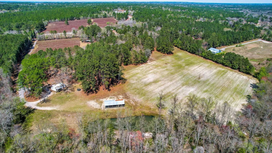 Hunter's Hideout located in the middle of Lexington, close to everything but away from everything. The land stretches back to the Congaree Creek and there are hunting lanes and lots of wildlife for that avid hunter. There is a fully stocked pond with bass, brim and catfish for fishing. The corn fields are ready to be planted and cropped. Hunt for deer, dove and other wild game. A port for farm equipment, boats, trucks, RV's or whatever you'd like to store and it could be easily closed in. The bungalow on the property is a 3 bedroom 2 bath with refrigerator, washer and dryer, and it has a really nice screened in back porch for relaxing in this quiet country escape. It could be lived in while you build, or have it as a second home as a getaway. There is a cleared homesite to build a forever home and has a well and septic in place. The driveway is asphalt all the way down past the blueberry bushes up to the house and the open cleared field. Hunter's will have a lot of fun on this property with all the game.