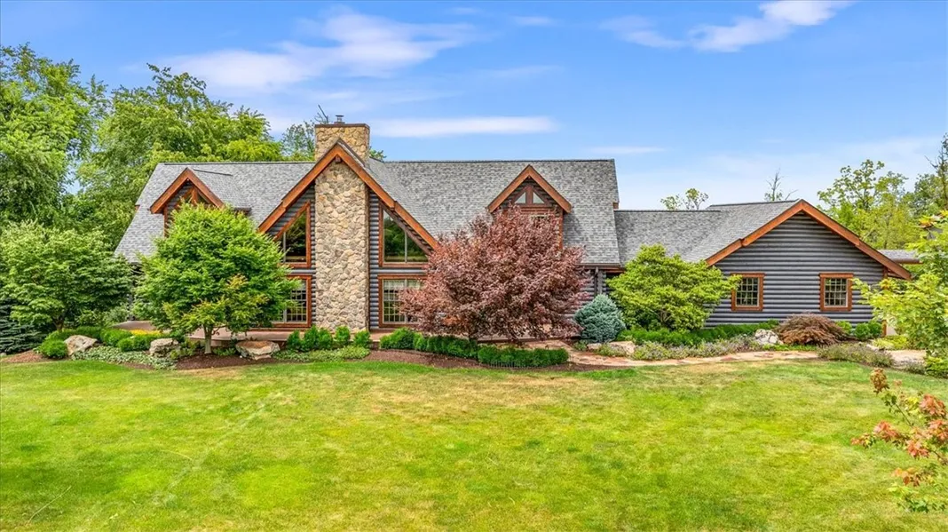 Escape to your private retreat w/this stunning log home on 13 wooded acres, with panoramic views & tranquility. Inside, the home boasts engineered hardwood flrs, beamed ceilings, & a great room w/a two-story stoned fireplace & wall of windows.Main floor includes primary bedroom suite w/ a renovated bath, a fully remodeled kitchen w/Granite counters & high-end appliances, & an office with deck access. The second floor offers two additional bedrooms, a loft, & a family bath. The fully finished lower level includes a 4th bedroom, full bath, & walk-out to the backyard paradise, featuring a plunge pool, paver patio, fire pit area,waterfall, & new composite decking.For the mechanical visionary the extraordinary garage accommodates 12 cars or 6 cars & 2 x 45' motor homes, featuring radiant floor heating, a 50 amp RV hook-up, 90 amp air compressor hook-up, office area, & LED lighting, & so much more.Located in North Strabane & near RT 19, I-79, I-70, schools, shopping, & entertainment.