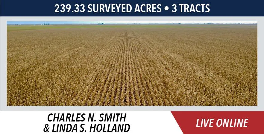 The Smith/Holland farm will be sold on a price per acre basis, based on surveyed acres. The tracts will be offered through the marketing method of Buyers Choice, whereas the high bidder can elect any or all 3 tract(s) for their high bid. If the high bidder does not elect all offered tracts, then the remaining tract(s) will continue to be offered Buyers Choice until all tracts have been elected. The tracts will NOT be offered in their entirety at the conclusion of the auction.