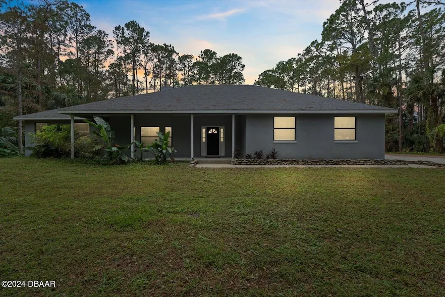 Rare Private Country Estate on 5 Acres Surrounded by Mature Trees This exceptional 5-acre property offers unparalleled privacy and charm, making it a true countryside retreat. The primary residence boasts over 2,400 sq ft of living space with an oversized attached two-car garage, accessible via a spacious front driveway. The estate includes two versatile outbuildings: A detached garage with an adjacent workshop or gardening shed, ideal for hobbyists or additional storage. A 2000 sq ft enclosed pole barn (2010) with a poured concrete floor and high ceilings, perfect for larger equipment, toys, parties or projects. Additionally, the property features a chick coop and two natural carports all ideal for housing farm equipment, RVs, boats, or off-road vehicles. The 3-bedroom, 2-bathroom residence offers a private in-ground pool, installed in 2011, surrounded by a spacious screened lanai with a covered area perfect for outdoor dining and entertaining. The large front covered porch invites peaceful mornings overlooking the lush country landscape. The Home's Interior Features a large foyer that leads to a warm and inviting living room with hardwood floors. At the center is a wood-burning fireplace, adorned with a custom hearth of hand-picked river rock, adding character and charm. Adjacent to the living room is a separate dining room that offers flexible use as a home office or private study. The chef's kitchen is an entertainer's dream, featuring expansive counter space, custom cabinetry with built-in uplighting, and a breakfast bar for casual seating. The dining nook overlooks the pool and natural surroundings, bringing in tranquil outdoor views. The split floor plan ensures privacy, with the primary suite designed as a personal retreat. It features: Built-in and walk-in closets, A double vanity, Soaking tub, Tile shower and a Private water closet. Two spacious guest bedrooms share a well-appointed guest bath. This property offers the perfect blend of nature and functionality, ideal for those seeking a rural lifestyle with plenty of room for hobbies, outdoor activities, and entertaining. All this is conveniently located close to shopping and restaurants of Port Orange. Call for your private tour today! All information recorded in the MLS is intended to be accurate but cannot be guaranteed.