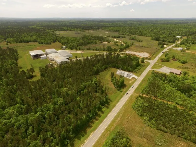 This versatile industrial and timber investment located near Butler, AL consists of a 16+/- acre manufacturing facility, 17+/- acres of open land, and 97+/- acres of timberland that includes merchantable pine plantation and natural pine/hardwood mix. The plant, which previously produced and distributed roofing felt, has approximately 100,000 sq ft under roof. An electrical substation joins the tract along its 1,756+/- ft of Hwy 10 frontage, and the plant is connected to the South Alabama Natural Gas system as well as the public water system. Other improvements include a scale, scale house, four loading docks with roll up doors, two of which are covered, concrete driveways throughout, four covered bulk storage areas, internal offices overlooking the plant floor, break rooms, clerical space, large storage rooms, stainless steel and tile process tanks, external boiler room, and a fire protection system with a large stainless steel water tank, automatic pump, and full sprinkler coverage. The external office building with fenced parking is ideal for administrative use. The undeveloped acreage could be used for expansion or hunting. There is also a nice potential lake site. SHOWN BY APPOINTMENT ONLY.