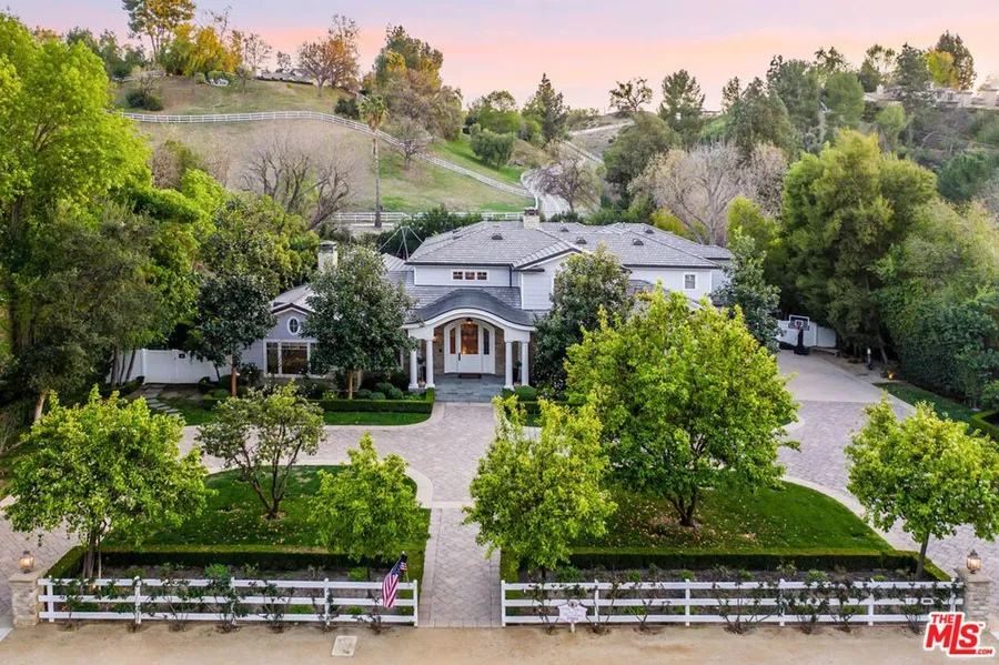 Incomparable, stunning newer, custom contemporary masterpiece. Perfectly sited on an idyllic 49,000 sq. ft. flat lot. An Estate property that stirs emotions with natural light flowing throughout & mountain vistas from the rear providing ultimate serenity & privacy. Located in the ultra-safe guard gated & patrolled exclusive community of Hidden Hills. Featuring 6 bedrooms (all en-suite / 2 on lower level) plus study/library & home theatre room. A grand eat-in Chefs kitchen with Marble counters, two islands & commercial grade (Wolf, Sub-Zero) appliances opens to the great room. A true butlers pantry open to the formal dining room. The grand foyer is ideal for greeting guests into this warm home with an exceptional floor plan that has been carefully designed with every feature imaginable for a large scale family living & entertaining. The stunning Master Suite offers a large walk-in closet, sumptuous bath overlooking the lush rear yard & pastoral views. The fit & finish of the entire home is beyond compare with elements such as: soaring voluminous ceilings, walnut wood flooring & Calcutta Marble. The ultra-private entertainers dream yard has a beautiful large veranda, pool with Baja shelf, spa, built-in BBQ & huge, flat, grassy expanse. 4 car garage. Round Meadow School. One-of-a-kind enchanting retreat with lush landscaping & mature trees.
