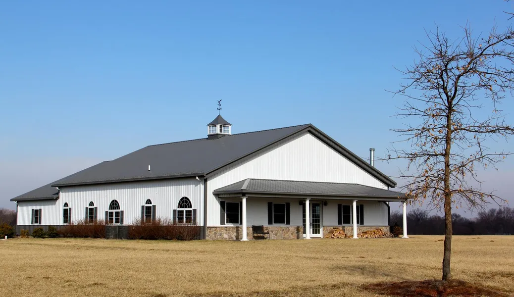- 2,688 square foot heated barn (56'x48' clear span). 14 foot ceiling and full concrete floor