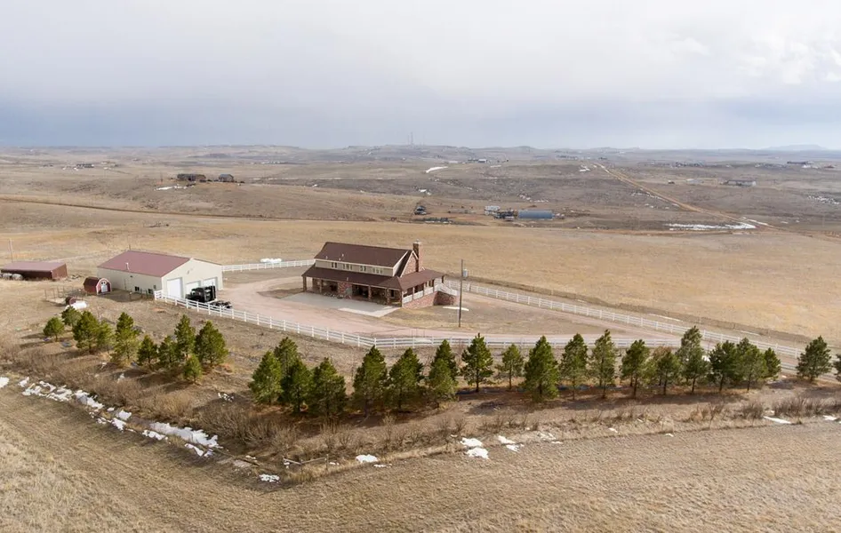 The 24 Burns Ranchette is located approximately 4.5 miles east of Douglas, Wyoming. Improvements on the property include a two-story, three bedroom, three bathroom home on a full basement with 3,165 total square feet of living space along with an equipment/storage building and small 288 sq. ft. storage shed. The home includes custom-built hickory cabinets, granite countertops, modern appliance, great room with gas fireplace and wet bar, master bedroom with master bath and two walk-in closets, and many more features. The 2,240 sq. ft. equipment/storage building has a 1,280 sq. ft. area that is heated and insulated with a concrete floor with the remaining 960 sq. ft. opening onto the pasture. The property includes a synthetic three rail fence with electrical decorative lighting along the entry and surrounding the improvements. The entire property is otherwise fenced in with steel posts and wire. There are two wells, septic, and some young tress with natural landscaping on the property.