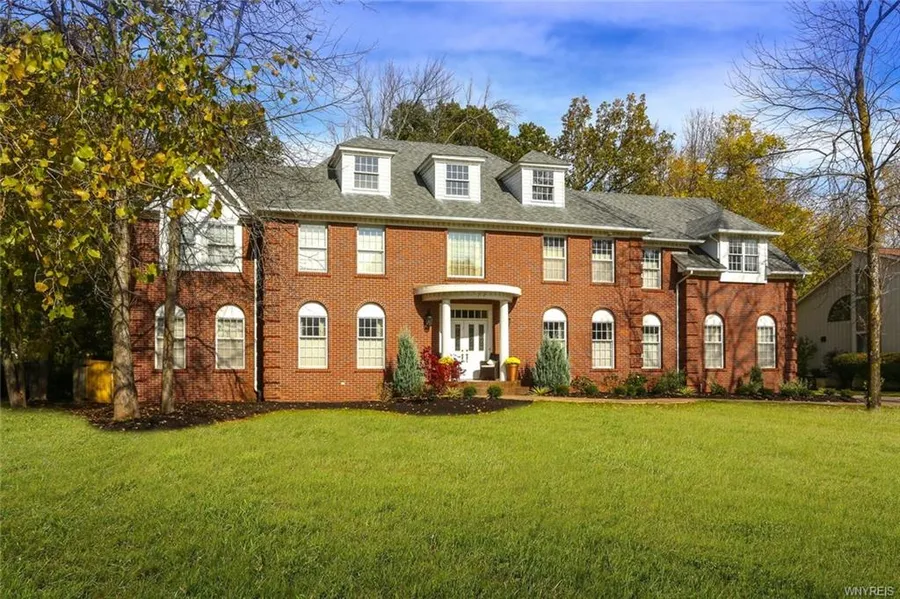 For today's discerning buyer this stately remodeled 5 bed custom built by Milazzo colonial features: 4800+ square feet, 2 story grand foyer, wide plank hickory flrs, 9'+ ceilings, formal living & dining rooms with crown moldings/transom windows, 1st flr library/office w/wall of cabinetry, family room w/built-ins, 2 fireplaces, kitchen w/high end stainless appliances, large mudroom/laundry, 2nd staircase, 3 full/2 half bath, 3 car garage, fully fenced private yard w/gunite pool (new heater/pump/filter/cover)& jacuzzi. Updated roof, furnace, HWT, carpeting, painting, lighting, new stamped concrete walkway, porch, patio, sprinklers, landscaping& invisible fence. Williamsville Schools!