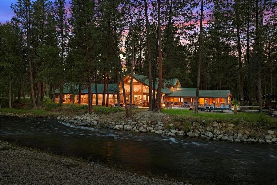 Set on nearly 22 acres with almost 2000 ft of prime Bitterroot River frontage, this unique Hamilton, Montana property features a rare combination of river access and high-end accommodations. At the heart of the property stands a stunning log home lodge, showcasing classic Montana style and craftsmanship throughout. Inside, you'll find attractive hardwood flooring, a beautiful river rock fireplace in the main common area, and a warm, inviting atmosphere that blends comfort and quality. The lodge includes three guest suites plus a deluxe primary suite, each room thoughtfully and stylishly appointed to provide rugged-yet-refined Montana character. Beyond the main lodge, the property features two well-designed cabins, a barn with apartment, and three luxury glamping huts, each one echoing the same attention to detail and rustic comfort found throughout. The entire property is being offered fully turnkey, including furnishings and equipment. Generous windows throughout the lodge bring in plenty of natural light and frame stunning views of the Bitterroot River, just steps from the back door. The spacious kitchen is designed to handle everything from casual meals to full-scale entertaining. High-end appliances, dual sinks, and ample cabinetry make it both functional and efficient, while attractive quartz countertops offer plenty of room for food prep and serving. A spacious dining area with a bar and TV creates the perfect gathering space for entertaining, relaxing after a day on the river, or hosting guests. With a total of 10 bedrooms with 15 beds, 9 bathrooms, and 9,284 square feet of finished space, this property provides options for a variety of uses. With nearly a third of a mile of Bitterroot River frontage, you'll have front-row access to some of Montana's best fly fishing, along with incredible views and a deep sense of privacy just minutes from downtown Hamilton.