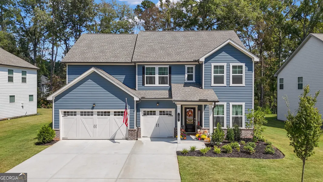 Welcome to Twelve Parks - where timeless design meets modern comfort. Still under the builder's warranty, this stunning two-story residence blends thoughtful details with an open, functional layout in one of Coweta County's most desirable new communities. The gorgeous curb appeal catches your eye from first glance!! Step inside and you're greeted by French doors leading to a versatile office or playroom. Continue down the foyer to the heart of the home: a bright, open concept living space where the family room, kitchen, and dining area flow seamlessly together. The living room centers around a gas fireplace with a gas log insert, surrounded by windows that fill the space with natural light. The chef's kitchen is a showstopper, featuring a large quartzite-topped island, Frigidaire stainless steel appliances (gas oven & cooktop, microwave, dishwasher), a stylish tile backsplash, serving bar, and plenty of cabinets for storage. Two pantries-including a spacious walk-in-add extra convenience. Just off the three-car garage is a handy drop zone and a half bath, perfectly placed for busy mornings. Step outside to the covered patio, an inviting retreat ideal for morning coffee, game day gatherings, or quiet evenings at home. Wide-plank LVP flooring runs throughout the main level, adding durability and style. Upstairs, a large loft offers flexible living space for relaxation, play, or media. Four bedrooms surround the loft, including the expansive owner's suite-the Everett model offers the largest primary plan in the community. This private retreat boasts abundant natural light, plush carpet, and a spa-like ensuite with double quartzite vanities, tile flooring, and a tile-surround shower. The massive walk-in closet even connects directly to the upstairs laundry room for ultimate convenience. Additional bedrooms feature walk-in closets and soft carpeting, offering plenty of room for family or guests. Attic pull-down access is located in the owner's closet. Living in Twelve Parks means access to resort-style amenities: a clubhouse with fitness center, swimming pool, playground, and multiple tennis and pickleball courts. Zoned to the highly ranked Coweta County School District, the neighborhood is just minutes from Newnan, Peachtree City, and Senoia. Everyday conveniences are nearby with Costco, Sam's Club, Publix, and dining destinations. Outdoor lovers will appreciate Line Creek Nature Area and Lake Peachtree just a short drive away. This home delivers the best of community, comfort, and convenience-don't miss your chance to make it yours!