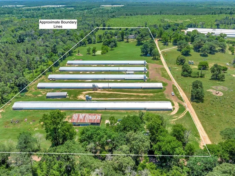 Poultry operation on a prime 25-acre property in Garrison, TX, located in Nacogdoches County. This farm features five poultry houses, a mobile home for the operations helper, and a charming ranch-style primary home with hilltop views of the surrounding land. The property includes approximately 5.5 acres of pasture and lightly wooded area, ideal for cattle or horses. The poultry houses are equipped with modern ventilation systems and are currently under contract with Tyson. Power is supplied by Deep East Texas Cooperative, with a backup Taylor generator for added security. Water is sourced from a well, with a community water line available as a backup. The main home boasts three bedrooms, two bathrooms, and a recently updated kitchen. Whole home generator included. Don't miss this opportunity to own a successful chicken house operation in a beautiful rural setting. There is potential to purchase additional acreage. Minerals to be reserved by seller.