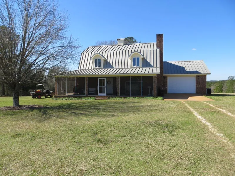 Has a nice 3bd 2ba house that can easily be used as a lodge or cabin. Has a den with fireplace and a open loft area. Also has a nice fully equipped kitchen and dining area. Garage is heated and cooled as well. Can look out large back kitchen windows in the morning and watch the deer and turkey eat.-- Also has a large barn that is perfect for tractor and ATV storage and has a cleaning area for deer.
