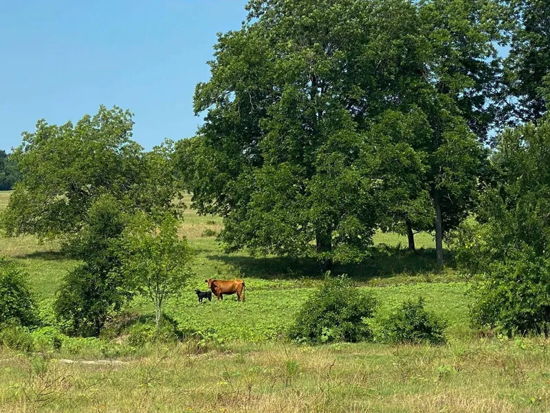 You enter the ranch near a set of old sheds and a small well house, from there a small set of pens and traps run to the south while the rest of the pastures are north and west. The ranch is divided into four main pastures with good cross fencing. The far western pasture is about 30 acres in size and the large pasture that adjoins it to the north is approximately 55 acres. Both have been cut for hay in the past, have a nice growth of Bermuda and still look the part of a hay meadow. The far northern pasture is about 65 acres in size and was at one time mostly wooded. It has been cleared except for the large pecan trees still growing there. These appear to be native pecans and there is a regrowth of pecan saplings beneath them as well as some blackberries and other brushy regrowth. This leaves the next owner with an option of either spraying and finishing the clean up to create another great pasture or letting some or all of it continue to grow to create a deer sanctuary. This would be especially beneficial on the eastern end of this pasture as it adjoins the Corps of Engineers land that buffers Hugo Lake. With the lake less than 2 miles away and surrounded by timber, it looks like a great spot to plant food plots and pull deer onto the property. In addition, the topography and clay soils in this pasture are ideal for building a lake up to 20 acres in size, assuming there are no flowage restrictions on this drainage associated with the Corps property and Hugo Lake. If this lake could be constructed, the duck hunting and fishing opportunity of the property would be outstanding. The last large pasture sits in the southern and eastern end of the ranch and is approximately 65 acres also. All pastures have shade, ponds for water and a strong limestone soil base that provides the minerals and nutrients that make cattle thrive. In addition, the arrangement of the pastures lends to an easy rotation between the west, middle and southern pasture as these three come to a central point with three gates making cattle movement convenient. Once cattle are in the northern pasture, they can be brought back to the barn area down the long arm of that pasture that extends to the south.