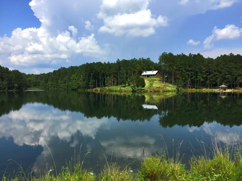 JUST REDUCED! This lake front property includes a 3 bedroom, 2 bath decorated and furnished home with separate master suite, as well as a guest camp for rollover sleeping. The home's hardwood floors, whitewashed ship-lap walls, and cedar lined closets provide a rustic feel. The main living area includes vaulted ceilings, den with slate fireplace, dining area, and kitchen with antiqued cabinets, butcher block countertops, and stainless appliances. The wraparound porch has an outdoor fireplace, shower, and fish cleaning station. Fish or boat the 30+ year old 11 acre lake with custom pier and zip line. Hunt the trophy whitetail and turkey this area is known for on 8 large food plots, most with enclosed shooting houses. The intricate road system makes it easy to get around, and most of the perimeter is fenced. Substantial timber value is provided by the 40+ year old hardwood, mature pine, and once thinned pine plantation. The adjoining 520 acre hunting lease may also convey. Located minutes from Jackson, AL and one hour from Mobile. FEASIBLE DIVISIONS CONSIDERED!