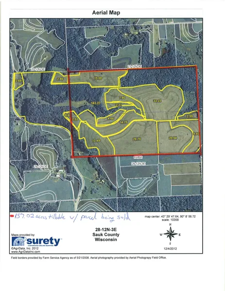 240 acres of farm land. Approximately 160-165 acres tillable with quality agricultural land. The primary soil type is Valton Silt Loam, with some Norden and LaFarge Silt Loam. Seller would like to retain hunting/recreation rights to the property as well as use of the barn & well, in return he would let a buyer farm his adjoining 4-5 acres rent free.