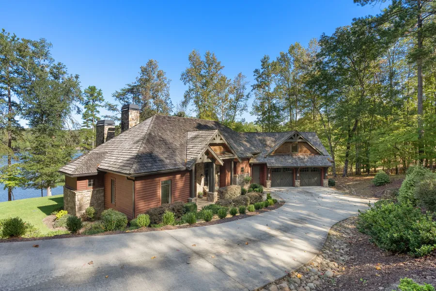 Situated on a flat waterfront lot framed by mature trees and sandy beach shoreline, this property showcases a serene natural setting with effortless access to the covered dock. With 265' of lake frontage, this setting is truly spectacular. From the moment you arrive, the arched glass entry framed in rich wood makes a strong first impression and sets the tone for the style and craftsmanship inside. The great room features vaulted beamed ceilings, a stone fireplace, and a wall of glass with sliding doors that open to the covered porch, showcasing lake views and seamless indoor-outdoor living and creating a remarkable gathering space. The arched transom windows mirror the timbered architecture beyond. Every element of this home speaks to refined mountain lake luxury. The gourmet kitchen combines elegance with function. A striking stone farmhouse sink, custom cabinetry, and premium appliances—including a gas cooktop with designer hood, make this space both beautiful and practical. A generous island with seating anchors the room, while contrasting finishes of dark cabinetry, light counters, and a timeless backsplash lend sophisticated appeal. Designed for both everyday living and entertaining, the kitchen flows seamlessly into the adjacent dining and living areas. Just off the kitchen, a window-wrapped dining area with built in cabinets, exposed beams and warm wood accents offer panoramic views of the lake, while the open layout invites both intimate meals and larger gatherings. With its effortless connection to the kitchen and great room, this space captures the essence of refined lakefront living. Outdoor living is seamlessly integrated into the design, with a covered porch that extends the living space and provides the perfect backdrop for entertaining or unwinding while taking in the beauty of the lake. The surrounding landscape offers privacy while still allowing for open vistas of the water. The main-level primary suite is privately positioned to one side of the home and features a spa-style bath with dual vanities, a soaking tub, and a walk-in shower. Enjoy your morning coffee on the private screened porch connected to the suite. Two additional bedrooms with a shared bath are located on the opposite side of the home, offering an ideal layout for privacy and convenience for guests and family. Above the garage, you'll find a fully finished bedroom suite with full bath which offers flexible functionality - well suited as an additional bedroom, bonus room, secondary rec space or private guest retreat. The Reserve at Lake Keowee offers a Jack Nicklaus Signature Golf Course, a par 3 practice facility with driving range and open-air range bar, Clubhouse with fine dining, pub area and wine bar, Fitness Center, Hiking Trails, 4 Har-Tru Clay Tennis Courts, Lakeside Resort-Style Pool and Cabana, Settlement Pool, 8 Pickleball Courts, Marina offering both slips and boat rentals, and Market great for lunch and select provisions. This gated community offers many activities including fitness classes, various social clubs, and a high-speed fiber-optic internet system in place. The Reserve at Lake Keowee is a full amenity lakefront golf community. The Settlement section has its very own Pool Pavilion/fitness. Premier membership initiation deposit required at closing.