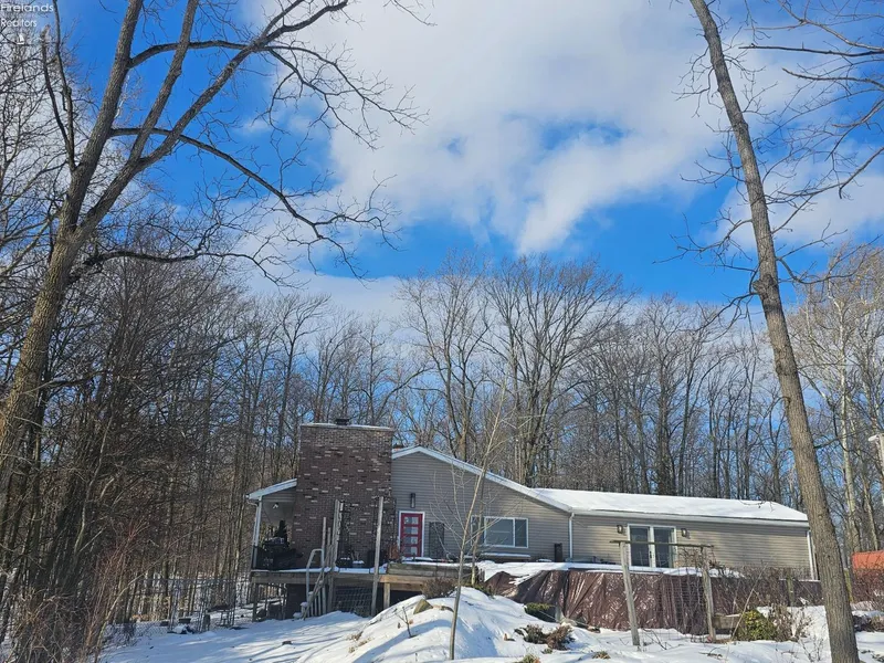 This home is truly a nature lover's dream! Situated on a blissful 8.275 acres of secluded land is this unique home featuring over 2,000 square feet, four pole barns, three season room, floored attic, 2.5 car attached garage, fenced fields, private woods and a beautiful stream. Heading inside, the first thing you will notice is nature views through the wall-to-wall glass windows and doors covering the entire rear wall of the home. The kitchen is honestly a chef's dream with granite countertops flanking the entire space, two-tier bar, modern hood vent, additional breakfast bar and dual built in wine fridges. Adjacent to the kitchen is the rest of the main living space with a large dining area and spacious living room with wood stove and plank flooring throughout. The main floor master suite houses a large walk-in closet. The full, finished basement has three bedrooms, a laundry room and additional living space. There is laundry on both the main level and downstairs in the full, finished basement as well. Enjoy nature's paradise while relaxing on the deck or floating in the pool!
