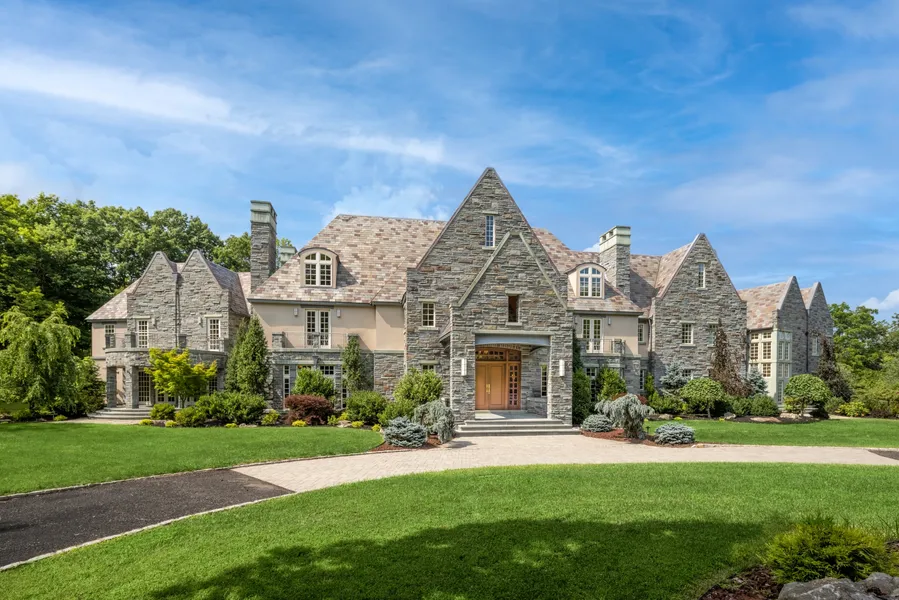 This extraordinary Bernardsville home blends the look of a French country estate with the sophistication of modern 21st-century living. No detail has been overlooked, from the elegant main foyer with a 20' coffered ceiling and exquisite grand staircase of cherry woods and iron to the masterfully designed gourmet kitchen and custom crafted millwork throughout the open distinct spaces. The exterior of stone and stucco, lead coated copper details, balconies, turret, and soaring chimneys suggest a modern European castle while the bright open spaces, high ceilings, and contemporary details of the interior give the en-suite, eight-bedroom residence the feel of today's most stylish luxurious appointments. The incredible lower level with unprecedented ballroom, bar, wine cellar, kitchen, theatre, bathrooms, lounge, and access to the outdoors, makes this the ultimate indoor/outdoor entertaining experience. Shopping, dining & recreational opportunities abound in the area including numerous equestrian facilities and nationally ranked golf courses. Excellent public and private schools include nearby Far Hills Country Day, Pingry and Gill St. Bernard's. Close proximity to the NJ Transit train and major highways makes this the perfect location.