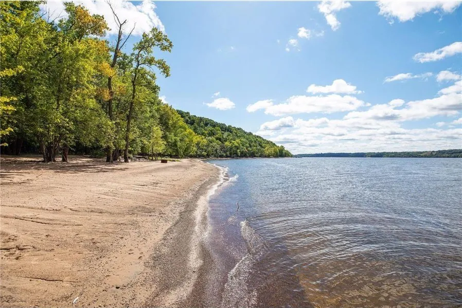 Spectacular home at a great price, with deeded St. Croix River access! Luxury that's affordable. A rare opportunity to have access to this fantastic private St. Croix River beach and dock. Pristine 700' Beach with a 40' dock, and acres of rolling wooded trails, accessible only to Starrwood residents. This home is nestled into a secluded, wooded, riverside setting. Minutes from the historic downtowns of Hudson and Stillwater. Impressive floor to ceiling stone fireplace in the living room, with grand vaulted ceilings, custom built-ins, and brilliant windows. Main level master bedroom suite features a