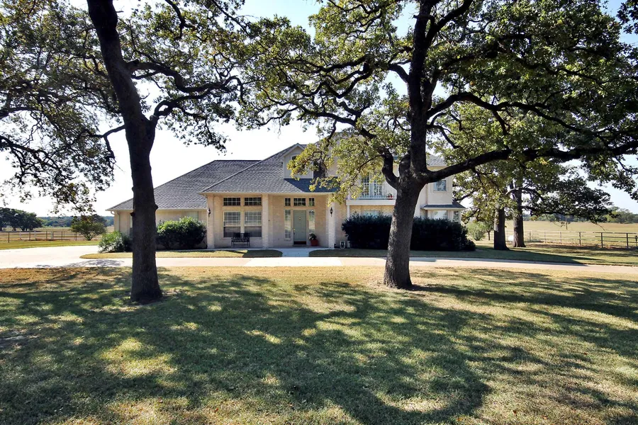 The attractive brick custom home sits in an eye catching setting surrounded by gorgeous oak trees with a pipe fenced perimeter. Offering just over 3,000 square feet of interior living space, its 2-story design features a large living area with wood floor and stone fireplace, 3 bedrooms including a spacious master retreat with sitting area, a home office, formal dining room, 2 full baths and 2 half baths. This home is very well maintained and shows beautifully.