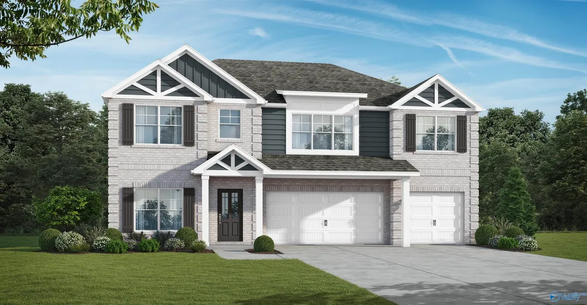 The Ramsey II. Gather around the quartz island in the kitchen with friends & family. The dining room with its coffered ceiling opens conveniently to the kitchen & breakfast area which seamlessly flow into the family room w/electric fireplace. Step outside the family room to the covered porch & put some food on the grill. Retreat upstairs to your primary suite with trey ceilings & sitting area. Enjoy a soak in the tub in your spacious bathroom. A huge loft, 3 more generously sized bedrooms with trey ceilings & laundry room on this level. 1 bedroom & full bath on the first floor. Covered Porch & 3car garage. Photos/videos are of similar home, options may not be included pr