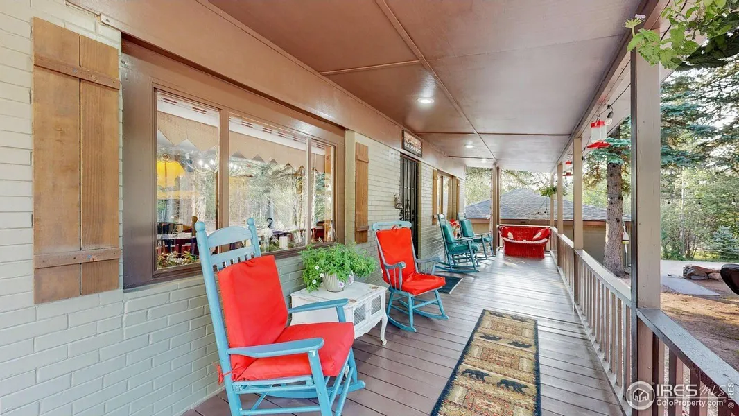 Sellers are currently upgrading the septic to accommodate 4-5 Bedrooms. Create lifetime memories here. 1 Acre Updated Home in Allenspark - ideally set up for entertaining - Making a comfortable year-round residence or a perfect mountain getaway cabin! Situated peacefully among the trees with a welcoming front porch hosting dozens of hummingbirds that will amuse you from your rocking chairs. Enter to find a warm and inviting living area with cozy wood-burning stove, and large windows that provide stunning views of the surrounding mountains and flood the space with natural light. Updated kitchen features a generous Butcher Block island and 3 new ovens - which offers little in the way of excuses for not offering homemade goodies... don't fret, the views from the kitchen picture windows will keep you inspired as you work, you may even spot a moose! The open dining area will comfortably entertain 12 people, and the oversized pantry & coffee nook make your guests feel at home while the German engineered wood plank flooring makes it easy to keep clean and impress. Fully renovated 2 Bedroom home, each with their own Full Baths and another bonus non-conforming space for guests with half bath. There are 2 Wood burning stoves at the family room and dining room to keep you cozy year round. New on-demand hot water tank allow the modern conveniences expected while Starlink securely connects you to the Internet for work and movie nights. Level property entrance leads to 2 car detached garage, additional parking areas, a generous workshop, 2 accessory units and 2 storage sheds + 200 amp electrical and room for RV parking. Possibilities and space for all to gather your loved ones to share smores under the stars & create cherished memories. An ideal respite to enjoy the serenity of nature while conveniently being just a few minutes drive to Estes Park, Allenspark, RMNP or Boulder!