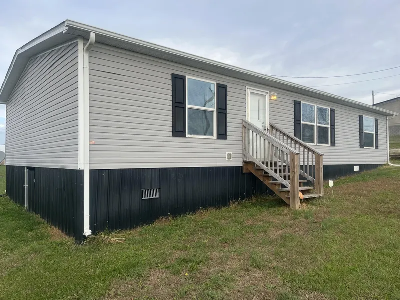 Discover this charming home in a serene country setting on a spacious half-acre lot. Inside, you'll find an open-concept living area with three bedrooms and two bathrooms, offering comfort and functionality. The inviting eat-in kitchen features an island, attractive cabinetry, and black appliances, perfect for preparing and enjoying meals together. The primary suite includes a private ensuite bath with a convenient shower/tub combination. For added convenience, washer and dryer connections are located just inside the rear entrance, and the electric water heater was recently replaced in July 2025. Step outside to enjoy the expansive yard, complete with a large deck ideal for entertaining and a secure kennel area for your pets. The entire property is enclosed by a chain-link fence, providing both privacy and peace of mind.