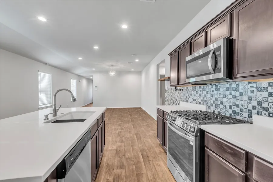 Why wait for new construction when this 2021 home is better than new? This beautifully maintained 3-bedroom, 2-bath home sits on a spacious corner lot in Breckenridge Forest and offers an extended covered patio, low-maintenance artificial turf, custom storage shed, and gas lines for a generator and gas dryer. The open-concept interior features quartz countertops, a Talavera tile backsplash, stainless steel appliances, walk-in pantry, upgraded flooring, and no carpet. The primary suite includes dual vanities, a tiled tub/shower, and a walk-in closet. Additional upgrades include fresh interior paint, a full-home water filtration system, and smart security features. Ideally located near neighborhood parks and pool, with easy access to Hardy Toll Road, Hwy 99, and I-45. Move-in ready and thoughtfully upgraded for modern living.