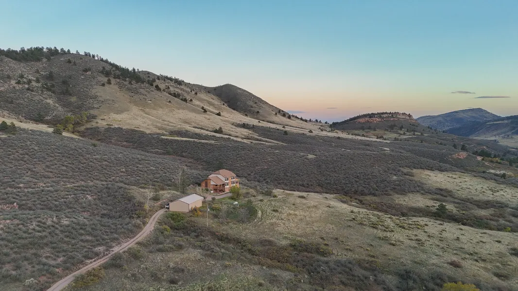 Welcome to Ponderosa Hill Ranch, a beautiful 243-acre property tucked into the foothills of northern Colorado and has a 4,320-square-foot home. This place offers true peace and quiet with mountain views in every direction, yet it’s only 10 minutes from Lyons, 25 minutes to Boulder or Longmont, and about 45 minutes to Denver. The ranch sits in a great mountain community in Larimer County and is protected by a conservation easement.