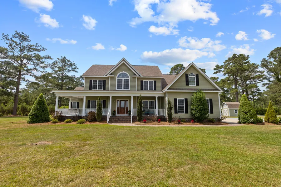 Unique and quaint country home with almost 9 acres conveniently located in Washington yet only miles from Greenville and Williamston. This stunning home offers 4 large bedrooms, 3 1/2 bathrooms, a living room, formal dining room, upstairs loft, plus a bonus/media room. Beautiful hardwood floors flow throughout the living, kitchen, and dining areas. In the kitchen you will find a large island topped with sleek, black granite, stainless steel appliances, and a breakfast nook. This home has a downstairs master bedroom and bathroom with a luxurious freestanding tub, double vanity, walk-in closet, and separate door to the back porch. Walk upstairs to find another large bedroom with an attached bathroom and walk-in closet which could be used as another master. Head to the upstairs bonus room for movie night with the attached projector and "screen" on the wall. Take the stairs from the bonus room into your attached 3-car garage with a workshop space perfect for storage. One of the key features about this property is the HUGE 3150 square foot heated shop in your backyard! This shop has 3 roll-up doors and is on a separate power service - with the purpose being to power your 12,000-pound car lift and many other electrical tools! Store all of your toys (and service them) at your own home. There is also a 24x24 open shed in the wooded area of your backyard. The home has all electric appliances, gas logs, a sealed crawl space with a dehumidifier, well water, and septic on site. The shop is heated with gas heat. This property won't last long, schedule your appointment today!