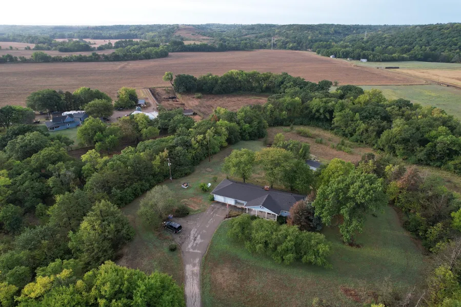 This 2 bedroom, 3 bathroom home is located approximately three miles south of I70 on Humboldt Creek Road. Access to the house and two outbuildings is provided by an asphalt driveway off a paved road. They are nestled off the roadway and very protected from the Kansas winds by a planted windbreak as well as native hardwoods. The home sits on 11.4+/- acres that include a mixture of hardwoods creek, a small hay meadow that could be utilized for livestock or converted into a food plot, and a large yard that has an additional area of brome grass on the north side of the creek. The ability to see and hear wildlife in your yard is a reality, and if you choose to hunt in your backyard that could be accomplished as well.