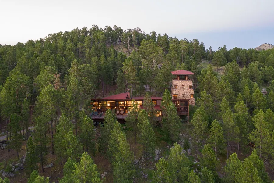 PRICELESS MT RUSHMORE VIEW! Out of this world custom designed home (Dick Knecht plan) and guest tower at private Lakota Lakes Community. No expense spared in the details that make this home a fine piece of art.The open floor plan, floor to ceiling windows, infinite corner windows, decks, and huge screen porch leads to a feeling of being one with the outdoors. Plus, the guest Tower beside the main home made to look like the Harney Peak lookout tower has living spaces on the first two levels & 360 degree viewing deck on top with a spiral staircase connecting allperfectly enchanting!Just 18 lots in the 80-acre community sharing ownership of common areas & amenities including a wine cave in an old gold mine, guest home, and the Rendezvous Lodge! Come relax in the serenity of this enchanting community surrounded by miles & miles of USFS. Walk to Lakota Lake for kayaking, fishing, or viewing pleasure. A tranquil retreat just 45 min from Rapid City on paved roads all the way!One of only 3 Wilderness Preservation Communities in SD.They are very conscious of not disturbing nature and taking good care of the land so all the homes seem to rise from the earth. With only 18 lots total, it will always feel spacious.The lots are set so you can not see other homes very much at all.The Wine Cave keeps your wine the perfect temperature.Property owners can reserve the guest house for the cost of the cleaning fee.The Rendezvous Lodge is a special gathering space, & has a full commercial kit.