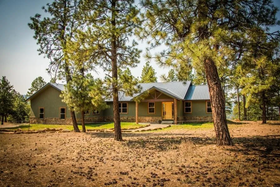 Avid outdoorsman's property with room for the toys. This 2,270 square foot, 3-bedroom, 2.5 bath, 2 car garage home, and a 1,960 square foot metal building situated on 35 park-like acres with a small pond and quick access to the San Juan National Forest. The home boasts and open living floor plan, cathedral ceilings, abundant windows, a native-stone masonry wood-burning fireplace, wood-look ceramic tile floors in the living area and rough-sawn wood plank floors in the bedrooms, with hewn log post and beams and alder trim. The kitchen is bedecked with granite counter tops, alder cabinets, stainless appliances, a gas range, and a spacious island with bar seating for 4 or more. The patio doors open up to a covered flagstone patio with a hot tub, privacy, and amazing sunsets. The over-sized attached 2-car garage is finished and heated. The home's low-maintenance exterior is built to hold up to the environment with native stone masonry wainscoting, stucco, and Fabral metal roofing. The insulated steel and metal building have finished concrete floors with drains and roof extensions over the front and the rear of the building, offering more covered storage or patio space. This multi-use building can be used to park your RV, heavy equipment, and all your toys, entertaining guests or housing your horses. This property is located just west of town in Elk Park Ranches, a 35-acre development with direct access to the national forest and 41+ miles of hiking, biking, ATV, UTV, cross-country skiing, and snowmobile trails. Enjoy privacy and peacefulness nestled in on this beautiful parcel of land where the only peeping toms you need to watch for are the Deer and Elk. Come to stay and play in Pagosa Springs.