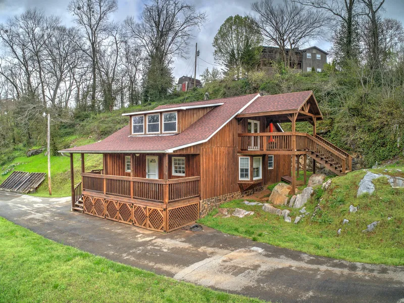 LOCATION, LOCATION, LOCATION! Retreat to your own peaceful paradise on the Nolichuckey River near the foothills of the Cherokee National Forest but still be within an hour of Asheville, NC., Knoxville, and the Tri-Cities. This is a rare opportunity to own that home on the river you've always wanted! Beautifully updated cabin fronting the Nolichuckey River, one of the nations best rivers for small mouth bass, crappie, catfish and trout fishing. Water is almost always calm and you can easily set in with your canoe, kayak, raft right in front of the cabin! This is the place to get away from it all and forget all your troubles. The home has been recently stained and has newer flooring throughout. The bathrooms are spacious and updated as well. Kitchen is original but good footprint and ready to make it your own. The master suite upstairs is massive and has spectacular views from it's own private covered deck entry. The 2 remaining bedrooms are very spacious with good closet and storage space. There is a small den/office/possible huge walk-in closet off of one of the downstairs bedrooms that also has an outside entry to the covered back porch. The covered front porch extends the width of the cabin and affords you plenty of room to relax and enjoy the sights and sounds of river life. You can also explore the many activities (hiking, biking rafting)and places that can be reached in a short day trip at Tennesseerivervalleygeotourism.org