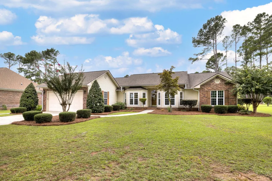 Gorgeous custom-built home on the #12 fairway of The Players Course in the scenic gated, waterside community of Wyboo Plantation. Situated on a beautifully landscaped half-acre lot, this home has plenty of curb appeal w/ Lake Marion views just across the street. Features for this 3BR/2BA home include: abundant sunlight through the new windows installed in 2022; 2023 & 2021 HVAC units; an oversized kitchen w/ pull out shelving, newer SS range/refrigerator, granite countertops & dual pantries; eat-in kitchen space w/ additional sitting area; dedicated DR w/ tray ceiling; LR w/ cozy gas log FP; freshly painted walls throughout; large temp controlled sunroom w/ LVP flooring & lovely golf course views; spacious 2-car garage w/ storage above; newer rain gutters w/ leaf guards & so much more. Whether you're teeing off from your backyard, enjoying nearby lake activities, savoring the tranquility of this property, or appreciating the amenities offered by the community, you'll find everything you need to live your best life right here!