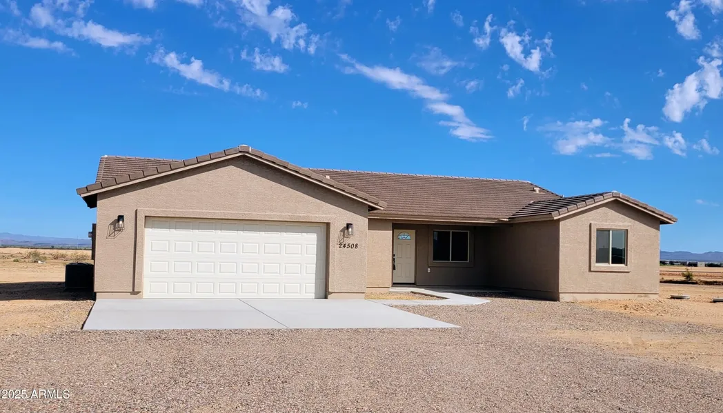This Brand-new home is finally ready and has power now. Well priced Ranch style home (no HOA!). Acre lot with plenty of room to enjoy the property. Great room concept and a big open kitchen with an island and walk-in Pantry, it has quartz counter tops and shaker style gray colored custom cabinets. Raised panel doors with brushed bronze hardware. Generously designed bedrooms. Master has a large walk-in closet and two vanities. Low E dual pane windows, insulated duct work in ceilings. Tile floors, except bedrooms(carpet). 10 year (2-10 Warr.). Only 4 party shared well (FHA financing ok.
