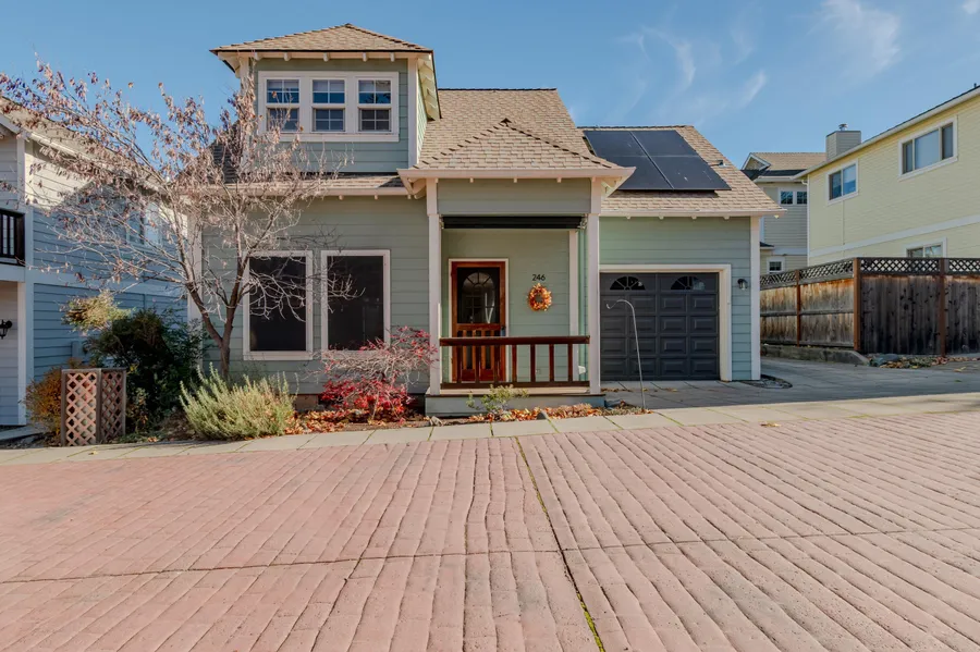 Charming cottage community located in a very walkable neighborhood, next to Railroad Park and near bike path, coffee houses, library, and downtown. Built in 1999 and all the big renewal projects for this house are done! New 50 year cool-rated roof, solar panels, and new high efficiency heat pump HVAC system with air filter built in all installed in 2023. Gutters were also cleaned, aligned, and brought up to snuff with a Leaf Filter screening system. The solar system can pay for approximately half of your annual electricity costs. This home has two stories. The main level includes great-room with hardwood floors, a cottage kitchen with greenhouse window, half bathroom, and the single-car garage. Upstairs has full bath, two nice sized bedrooms - one with a dormer feature overlooking our ''Alley'', and a generous nook which could be your office, studio, or even converted into a third sleeping area. Windows and a skylight let the place glow!