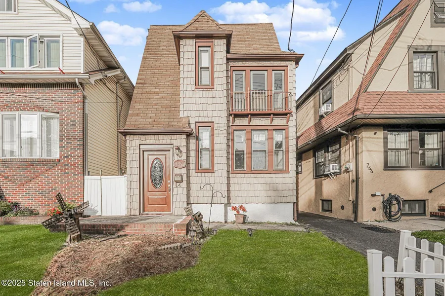 Welcome to 246 Dubois Ave, a charming, single-family detached home, nestled in the sought-after neighborhood of Westerleigh. This beautifully maintained house offers 3-bedrooms, 2-bathrooms, a full basement, and a private backyard. The first floor welcomes you with a spacious living room, featuring a striking floor-to-ceiling stone/wood-burning fireplace, ideal for cozy evenings. Gorgeous hardwood floors throughout lead you to a formal dining area with additional space that can serve as a home office, or study nook. The modern kitchen is designed for both style and function, boasting updated countertops, a tiled backsplash, porcelain flooring, stainless steel appliances, and sliding glass doors that open to the backyard. A convenient half bath completes this level. Upstairs, you'll find three generously sized bedrooms and a full bathroom. The primary bedroom easily accommodates a king-size bed, while the finished attic provides additional storage space. Conveniently located near Forest Avenue's vibrant shopping district and the natural beauty of Clove Lakes Park, this home combines suburban tranquility with city accessibility. Whether you're searching for your forever home or an excellent investment opportunity, this property delivers both lifestyle and value.
