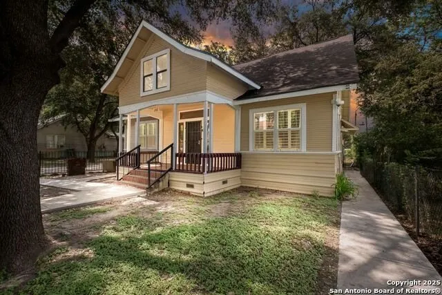 Come visit this cozy historical home today. This lovely 2 story home is located on a quiet peaceful tree-lined street. Stepping onto the comfy covered front porch you will already sense the feeling of Home Sweet Home. As you enter the home, you will be impressed with the classic charm and modern updates this home offers. The open floor concept is perfect for entertaining friends and family fun. The huge kitchen and dining area is a great place to explore the creative chef inside of you. Downstairs boast a spacious master suite and private bath with oversized walk-in closet plus 2 additional secondary bedrooms. One of the secondary bedrooms features its own private bathroom which creates an amazing mother-in-law suite. Also downstairs is an open area with endless possibilities, laundry room and half bath. Plantation shutters throughout ! Upstairs offers large gameroom/media area, private bedroom, large office/closet room plus plenty of storage. The home is situated on a large lot with mature trees and is ideal for creating your own outdoor retreat for fun and relaxation. There is an oversized driveway which provides plenty of parking spaces. Property is secured with electric gate. All of this is located minutes away from Beautiful downtown San Antonio, The Pearl, Riverwalk and all the other benefits of the fabulous city. For more adventures, one can easily take a short walk over to Mission Concepcion Park and enjoy the hiking and/or bike trails. All of this can become Yours!