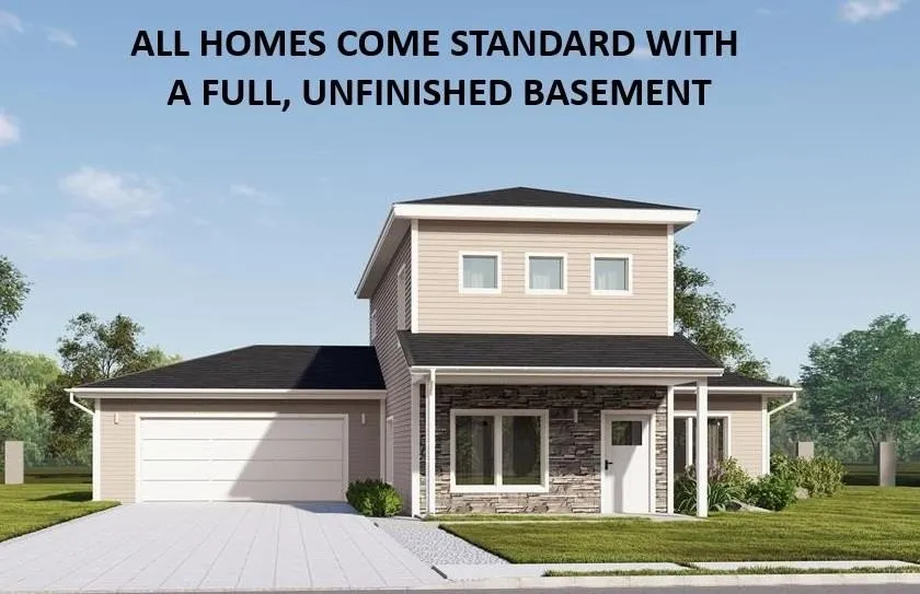 The 2 Year Old floor plan can be built on any available lot in Phase 1 (lots 1-18) - and includes a FULL basement! This 3 bedroom, 2.5 bath home offers a generous living/dining/kitchen area open living space that includes snack bar seating in the kitchen. The master bedroom is spacious and the adjacent suite is welcoming with it's double vanity finished with quartz counters. Plenty of closet space with this floor plan including a pantry off the kitchen and dedicated laundry and mud room. The Switch Homes Community, is NOT a co-op, but is a master-planned community off the NW Arterial which is slated to feature a park, ample greenspace, trails and opportunity for residents to thrive. Residents may choose from one of Switch Homes' seven floor plan options and select the finishes to customize the home to their desired taste. All of the homes offer a two-car garage, FULL unfinished basement, no-step entry, quartz countertops, and many other quality building materials at our standard pricing levels. Each model can be built on any lot within the development allowing buyers the freedom to choose their lot, choose their home & choose their finishes in a simple buying process. Showroom is open most days during the week, but your agent can call to set an appt to come by to look at the materials with their client. **Exterior photos are renderings, interior photos are from actual homes built by Switch homes to show various layouts and finishes, some are virtually staged