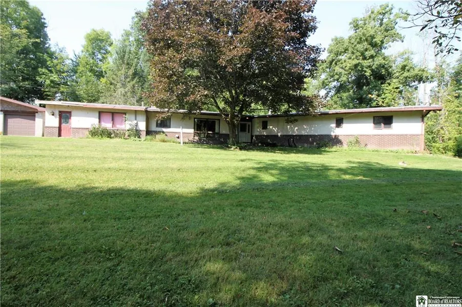 A sprawling ranch home on a private setting. The home sits on just over fourteen mostly wooded acres of privacy. The home features four bedrooms and three full baths. The one bedroom and bath are on the opposite end of the house from the other bedrooms creating a private area for a guest suite. The primary bedroom is huge and has an attached bath and a very large walk-in closet with a window. This bedroom has a sliding glass door to the outside where you could have a private patio. The other two bedrooms on this end of the house are spacious and have large closets. The hall bath has a double vanity. The foyer is the center point of the house. It leads into the very spacious living room that is octagon shape. This room features a fireplace, beamed ceiling, built-in book shelves, and plenty of windows. The interior also features a kitchen with wood cabinets and a breakfast bar that is open to the family room, a nice size dining room and a huge laundry room with a pantry. There is an attached two car garage and a detached two car garage. The home has a central vac system and tankless water heater. This home could be a fabulous home with a little work.