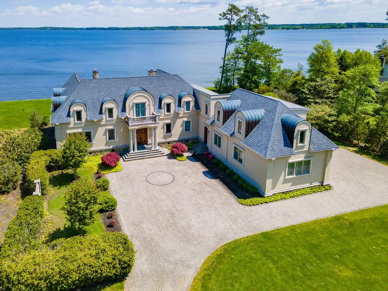 Welcome to St. Michaels! This spectacular site on the Miles River has 180 degree unobstructed water views. This French country style house maximizes water views with a rear elevation full of doors and windows from all of the main rooms. Enjoy the waterside terraces at the main and upper floors as you relax and watch the promenade of sailboats during the summer season and the migratory birds in the fall. Spend weekends exploring the river from your pier with its 4 ft MLW. Pick your spot on the river to watch the St. Michaels July 4th Fireworks with your boating party. All this in a small neighborhood of double cul-de-sacs with the The Links at Perry Cabin golf course and the attractions of St. Michaels nearby. The house was solidly built of extra heavy steel and wood framing finished in stucco above the exposed foundation wall of stone veneer with a decorative water table, rounded copper covered dormers for a low maintenance facade. The house is L shaped with the side wing containing the three-car garage with its doors facing away from the street. The motor court's surface of cobbled stone pavers leads up to bluestone steps at the front entrance with a porch framing the view of the stunning dual Art Nouveau styled mahogany doors with inlaid vertical panels below round glazed panels. The front doors open onto a vista through the spacious two-level foyer and living room to the water views. Each level of the foyer is detailed with inlaid hardwood floors and coffered ceilings uplit to feature their copper faux finish. The cross vista from the upper entry ends at the sumptuous master suite and the open plan kitchen - breakfast area - family room at the other end. The kitchen has all the features prized by gourmet cooks-beautiful cabinetry, granite countertops, large island with a Gaggenau range across from the upper counter for bar stools and water views from both the island and kitchen sink at the side wall. The corner two-story family room has a fireplace at one interior corner freeing up the two exterior walls for diagonal water views from its walls of windows and doors. Rear tall transoms of the two story space provide additional sunlight. The side exterior French door leads to an elevated lawn area with a perimeter wall of stone that could be excavated for a pool or large hot tub and the exterior door that faces the pool has a full bath/changing space. One-third of the main floor plan contains the sumptuous master suite with the waterside bedroom, fireplace, his and her baths, including a jacuzzi tub and steam shower and two walk-in closets. The other bedrooms are located on the second floor and at the top of the stairs is a library-TV area. Between two bedrooms is a cozy space that could be a sitting area with its French door to a terrace. The corner third bedroom is opposite a space that is currently outfitted as a home gym. At the opposite corner is another open plan space that would be a great playroom. The upper level of the garage wing was originally designed as a bedroom-living suite with its own stairs down to its own exterior door. Two additional bedrooms could be added in these spaces with ease as well as an elevator. Unbelievable water views, low maintenance exteriors, high ceilings and unique details-a must see!