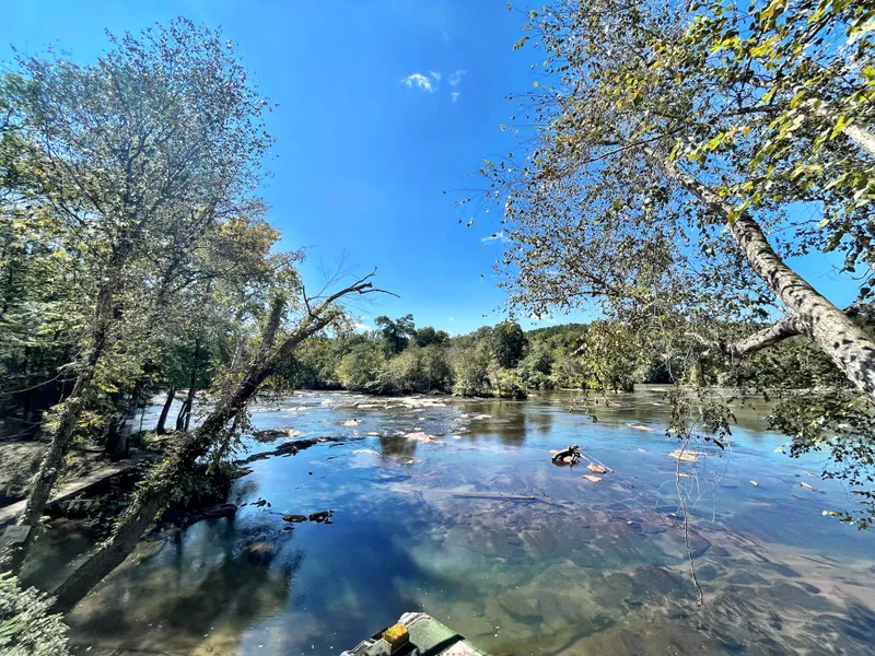 Beautiful River front Paradise with cabin on one of the largest and most unique set of shoals on the Ocmulgee River, the steps of Dames Ferry, which is comprised of incredible shoals that step down several levels and then the river splits into 5 separate braids. The house sits right on the river's edge with huge deck, 1 bedroom, 1.5 bath, kitchen that opens to great room with fireplace, lower level open with finished wood floor for additional storage and covered cooking area, a wooden walkway over small section of the river that leads to cleared tip of island adjacent to house with picnic table and excellent area for swimming and some of the best shoal bass fishing in Georgia. Kayak ramp in place as well. The house sits on one acre and there is a second one-acre lot platted and ready for an additional house and or barn. Property is serviced by electric, well, septic and propane. Truly a one of kind Ocmulgee River opportunity. Call for an appointment to see.