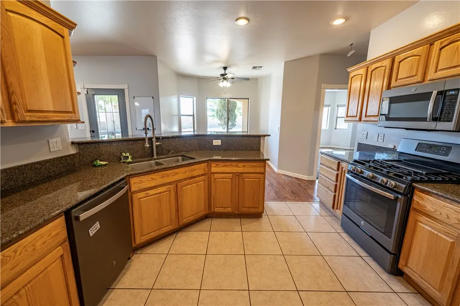 Welcome to this exceptional Santa Fe-style home in the highly desirable Hualapai Foothill Estates, perched on a double corner lot totaling over half an acre (0.55 acres) with breathtaking views of the Kingman city lights at night. This spacious 2,280 sq ft home offers a thoughtfully designed split floor plan w/ 3 generously sized guest bedrooms & a full bathroom on one side, & a luxurious primary suite on the other. Inside, you'll find an office/den perfect for remote work or a quiet reading nook. The kitchen is a chef s dream with upgraded appliances, two-tier granite countertops, & ample cabinet space. The primary suite is an inviting retreat with direct access to the backyard, room for all your furnishings, a spa-like en suite bathroom featuring a double sink vanity, a jetted soaking tub, and a large walk-in shower. The 60 sq ft walk-in closet provides all the storage space you could ask for. The backyard is a true highlight, offering multiple functional & relaxing spaces including:***A stuccoed gazebo on a concrete slab with power, ideal for entertaining or outdoor dining***A second large concrete pad ready for your custom ideas***A 12 x12 stick-built, stuccoed shed w/ slab foundation***A 12.5 x 20.5 unfinished casita fully drywalled & wired, just waiting for your finishing touches... The oversized 3-car garage & expansive lot provide plenty of space for your vehicles, toys, & more. Topping it all off, the home is powered by a leased solar system, providing efficient and sustainable energy year-round. This home checks all the boxes... space, style, views, & value in one of Kingman s most sought-after neighborhoods.