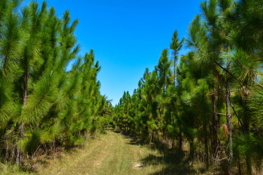 The property, in the shape of a 7, is traversed by an interior road system and trails providing access over the land. The tract has approximately 37 acres of old field planted in seven-year-old Longleaf pine. The remainder of the acreage is in regenerating pine and hardwood with some lower hardwood area providing cover and water for wildlife.