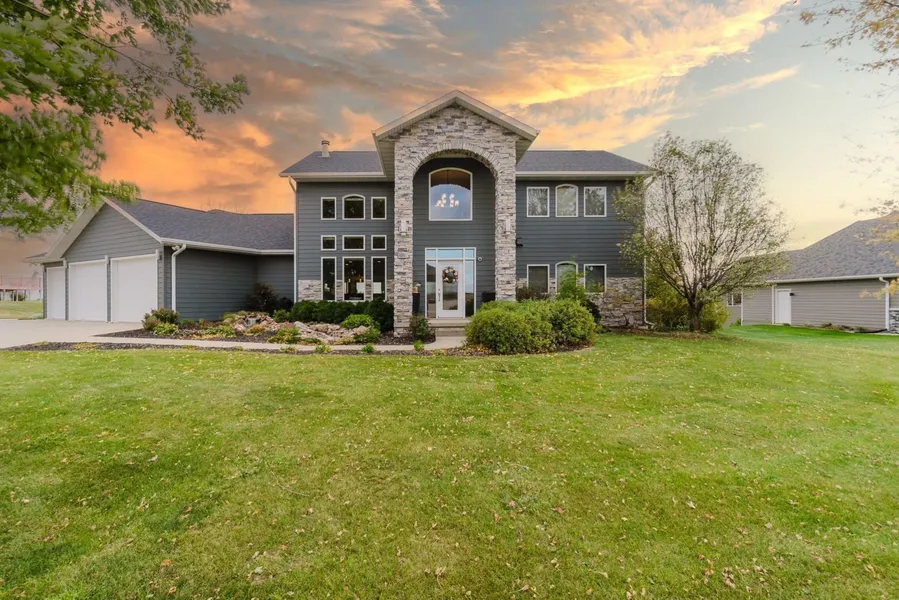 Residence of Distinction in the Ice Cream Capital of the World~ Some homes make a statement the moment you arrive — exuding grace, confidence & presence. This remarkable 5 bed, 4 bath home does exactly that. Perfectly set on a beautifully landscaped ¾-acre lot in one of Le Mars’ most private neighborhoods, it represents the very best of refined living in the Ice Cream Capital of the World. From the stately exterior to light-filled interiors, every inch of this home reflects thoughtful design & meticulous care. Step inside the grand great room with soaring ceilings, custom millwork & a sweeping staircase that sets an unforgettable tone. Natural light fills the space, accentuating the elegant fireplace & open flow that makes entertaining effortless. The main-floor owner’s suite offers a true retreat~ with heated floors, onyx rain shower, freestanding soaker tub & cozy fireplace. A custom walk-in closet completes this sanctuary of comfort & sophistication. At the heart of the home, a chef’s kitchen shines with custom cherry cabinetry, Cambria quartz countertops & a stunning waterfall island. The open layout connects dining area & flowing to an east-facing deck with outdoor kitchen~perfect for gatherings or peaceful mornings. The upper level features three spacious bedrooms & a full bath, while the walkout lower level impresses with a full kitchen, granite-topped bar, home theater & game area. Heated floors add warmth throughout & the patio’s wood-fired pizza oven makes outdoor entertaining unforgettable. A spacious three-stall garage with direct basement access, mature landscaping & a welcoming neighborhood with basketball court & picnic area complete this exceptional property. A true residence of distinction~elegant, livable, and impossible to replicate at today’s prices.